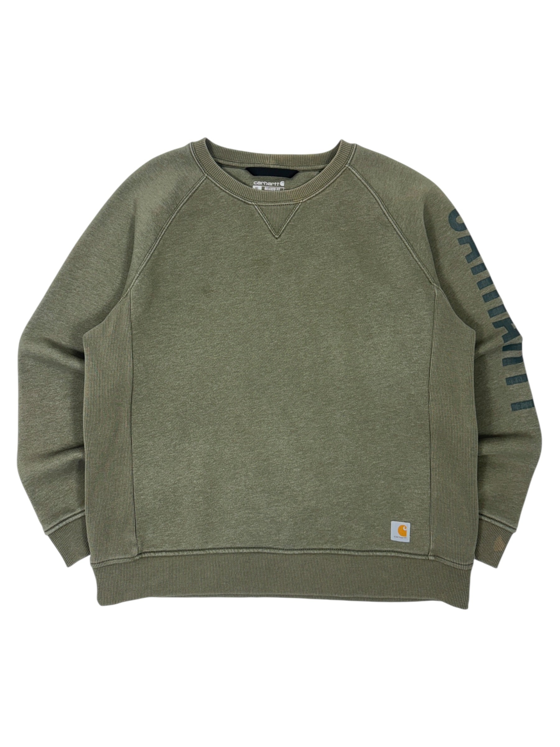 Carhartt Faded Spell Out Olive Crewneck - M